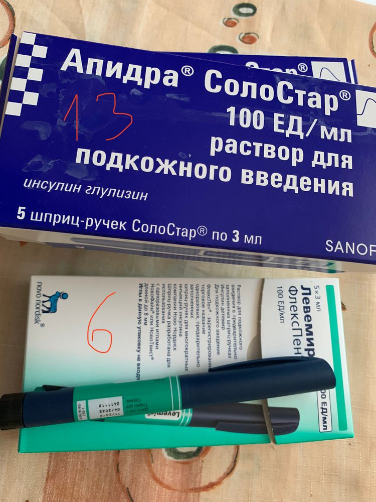 13 ручек Апидра и 6 Левемир.