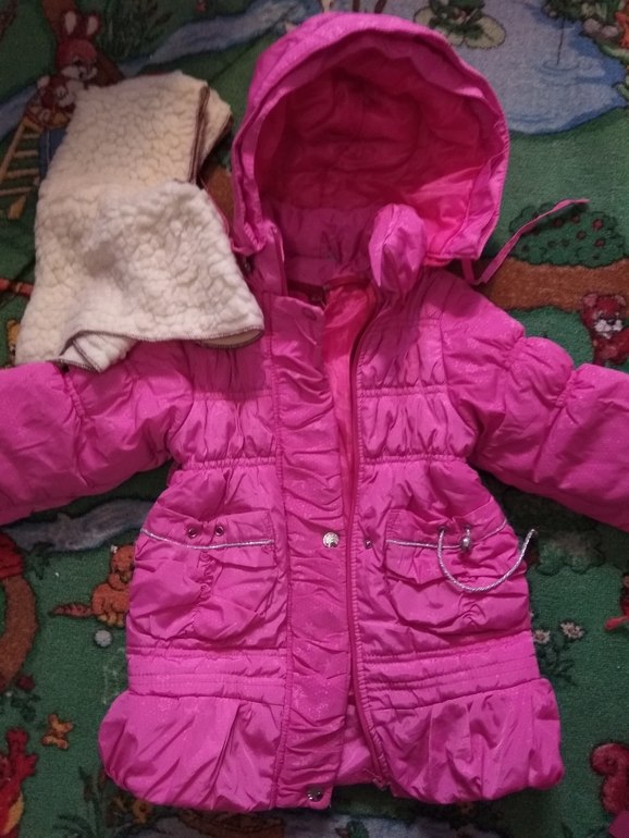 Пальтишко осень-зима, с подстежкой, размер года на 3. Внизу немного отошла молния, в инете есть ролики как это исправить на меняя всю молнию