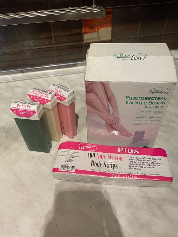 Воскоплав с базой + 3 картриджа с воском + тканевые полоски для воска