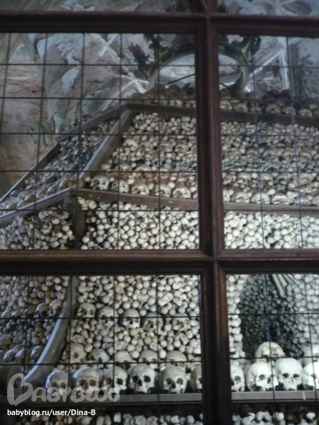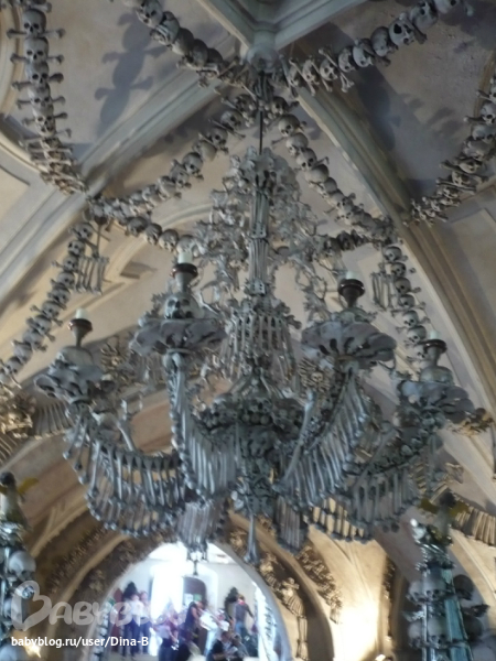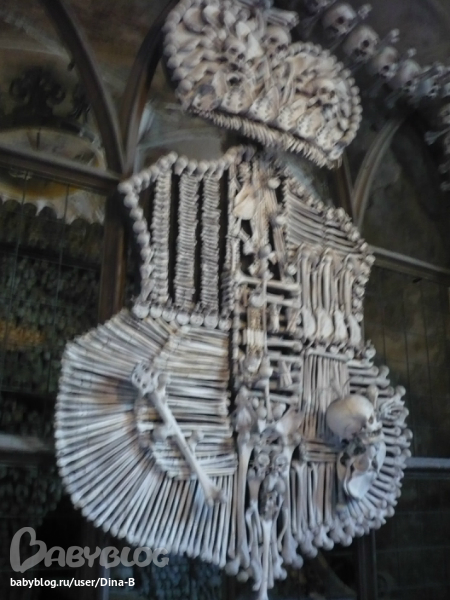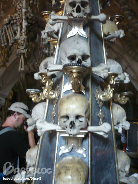 Еще мы сами купили билеты на поезд и доехали до Кутны Горы. Это маленький городок, достопримечательностью которого является Костница, в которой все сделано из человеческих костей и черепов. Конечно же мы посетили это место. Место жуткое!