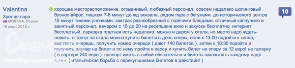 Привет, так и не познакомились, меня Катя зовут ) Мы съедили на отлично, единственное - мне не хватило пару деньков еще, ну так всегда )) Изначально у нас был забронирован очень хороший отель в самом центре(сама бронировала), за два дня до поездки в целях экономии решили перебронировать на такого же класса, но территориально подальше. В результате тоже добирались до центра не пешком, а на метро (15-20 мин, от отеля станция в 2 мин). В следующий раз решили все-таки в центре...Наш утренний рейс в Милан отменили, приехали только во второй половине дня, а хотели с самолета в аутлет махнуть, пришлось переигрывать. Помимо Сераваллле мы еще пошопились в самом Милане, благо скидки практически во всех магазинах, с размерами и правда напряженно - везде, все повыбранно, в следующий раз поедем к началу распродаж, хотя жаловаться, что мы плохо закупились - грех, времени много затратили, дергая по одной вещи из каждого магазина, но в целом удачно. С учетом такс фри вообще сладко вышло. В Ла скалу попали указанному мною способу за 13 евро, понравилось, были на Фальстафе, а вы? Понравился очень музей Леонардо Да Винчи( просто гигантский комплекс с экспонатами разных времен и направленностей, от промышленного дизайна упаковок до корабле-самолетостроения), были еще в галерее Брера и музее замка Сфорца. Нашли очень крутое не туристическое рыбное кафе...На футбол не ходили, пицами объелись, сырами тоже, уходили из отеля утром, возвращались поздно вечером, короче, в целом довольны. А почему именно в Париж?