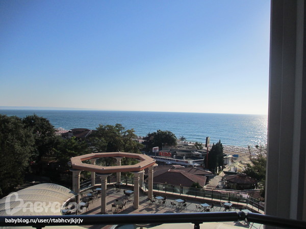 ЕДА. Шведский стол. Очень приличный выбор. Все пишут, что хуже чем в Турции. Я бы так не сказала. Ни чем не уступает. Большой выбор салатов, закусок, мяса, 3-4 вида всегда, гарниры также 3-4 вида. Напитки любые. В главном ресторане есть свой бар. Вообще баров много: на пляже, в лобби баре, на террасе, на дискотеке. В обед на ужин по 2 вида супов. Один из них часто суп- пюре. Много фруктов: арбузы, дыни, виноград белый и красный, персики, нектарины. При желании на улице можно купить за 3 лева стакан клубники, малины и все прочее. За 2 недели раз 6 была тематическая кухня: Болгарская, итальянская, месиканская, средиземноморская, и другие. Официанты очень расторопны даже слишком, если замешкаться, могут убрать недоеденный обед из- под носа)). Вежливы и всегда улыбаются. Для детей есть детские стулья.