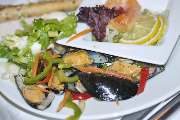 Далее еда: колбаса и сыр НАСТОЯЩИЕ ( эмменталь, эдам, гауда, дор блю, пармезан, ветчина, индейка), по утрам свежевыжатый сок; мидии, улитки, рыба-меч, и проч и проч.И НИКАКИХ очередей! Только утром у кофемашины со свежемолотым и свежесваренным кофе ( к автомату с порошком не было очереди)