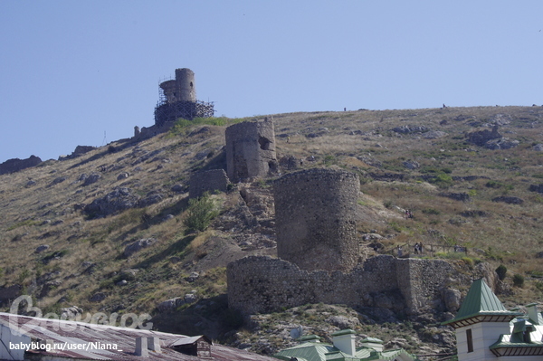 В первую же неделю мы съездили в Судак. Муж восторгнулся серпантином по дороге ) Ему понравилось, но утомительно долго ехать и везде сплошная линия. Народу на пляже дофига, полотенце кинуть некуда. В итоге, притулились рядышком с арендаторами всякой водной техники. И в Судаке у нас возникла пробелма с кафе, что-то мы с трудом там отыскали что-то приличное.