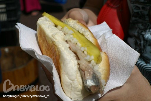 И ещё забыла про национальное блюдо! У нас палатки с хотдогами, а у них с селедочкой на белом хлебушке. Вот так просто среди улицы навернул селедочки с лучком и пошел себе дальше. ))))) Божественно вкусно!
