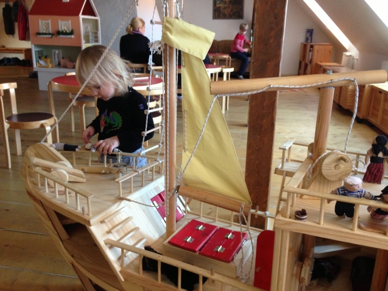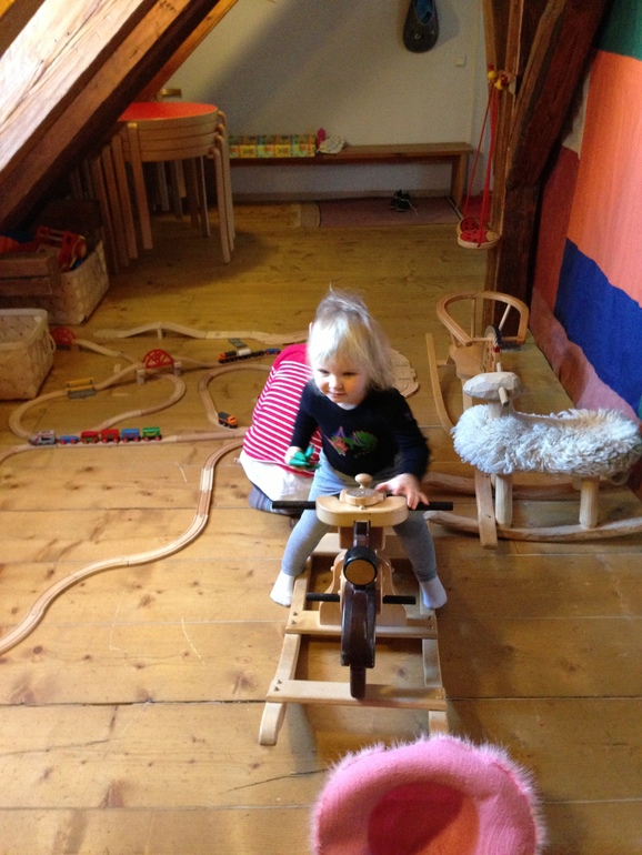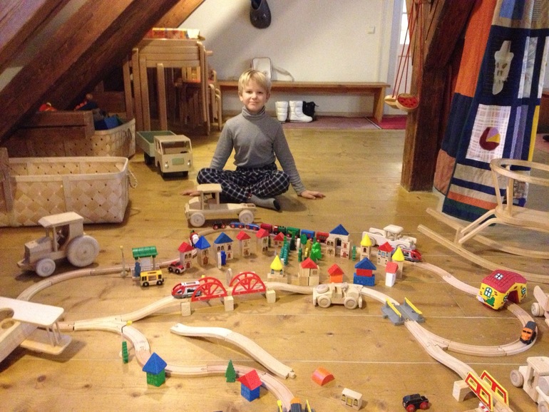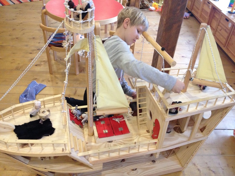 Это даже не комната, а двухэтажное помещение с кукольным театром, костюмерной, кухней и множеством игрушек. Почти все игрушки здесь деревянные - пластиковых совсем немного. Много самодельных тряпичных кукол, настольные игры, детские книги, правда, только на эстонском языке.