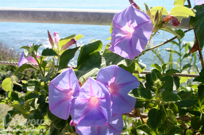 Цветы разные, а когда запах цветов смешивается с запахом моря, то этот аромат кружит голову...