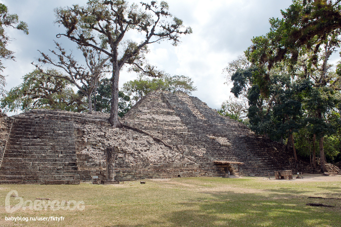 Копан. Одно из крупнейших археологических городищ на территории Гондураса. Это и была наша цель тут) Обратите внимание на деревья, которые за столько лет, разумаеется, разрушили основную часть кладки.