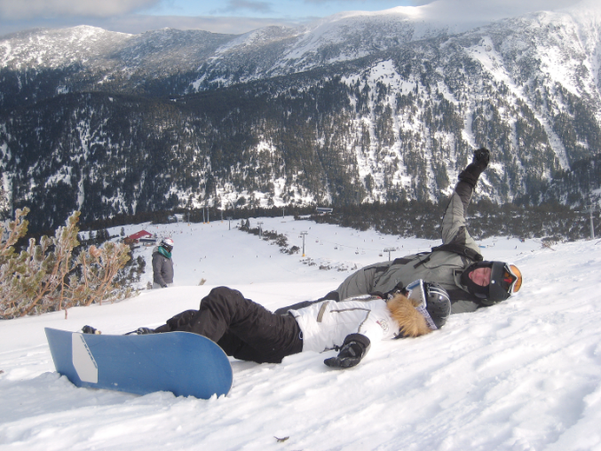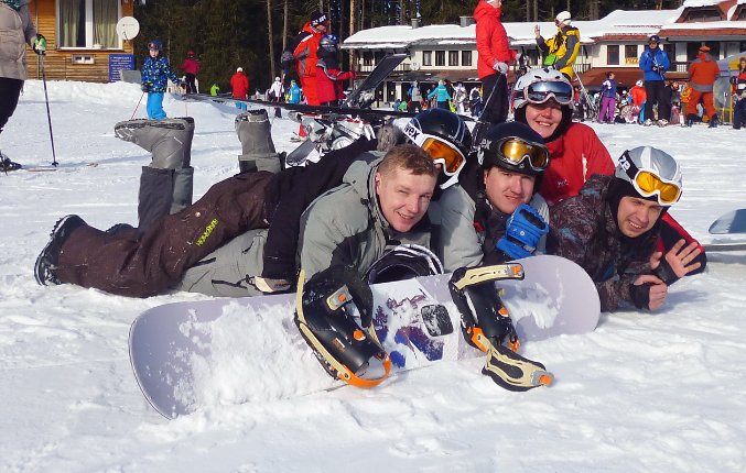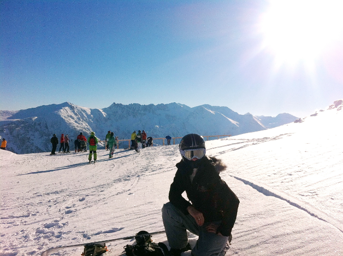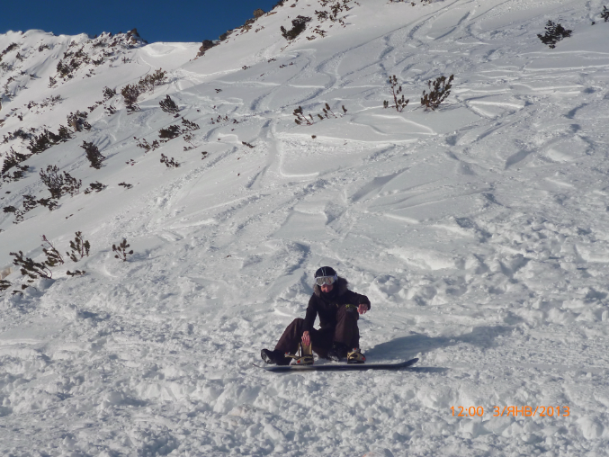 Муж, ръяный сноубурдист, решил переквалифицироваться в горнолыжники - то ли голову припекло, то ли воздух мозг затуманил - но взял на прокат оборудование и осваивал азы горнолыжного спорта - понравилось))