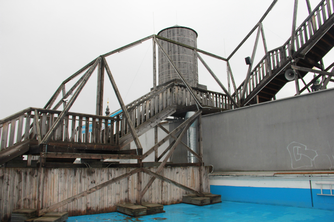 Сначала мы прошлись по центру в поисках "мостиков" тех, которые на крышах. Обошли все. Мостиков не нашли. Но в один прекрасный миг, я увидела некую деревянную конструкцию на крыше одного из торговых центров.