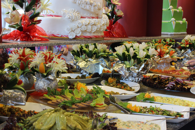 Каждый из столов украшен букетами из овощей, Это так красиво...