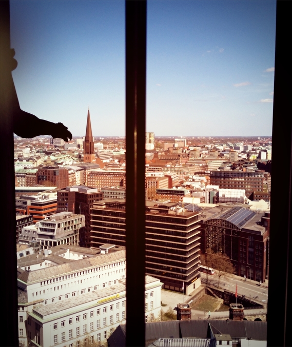 Посетили Костел св. Николая, поднялись на лифте на самую верхушку костела, весть Гамбург был как на ладони. Это было целое испытание для меня, т.к. я боюсь высоты)))