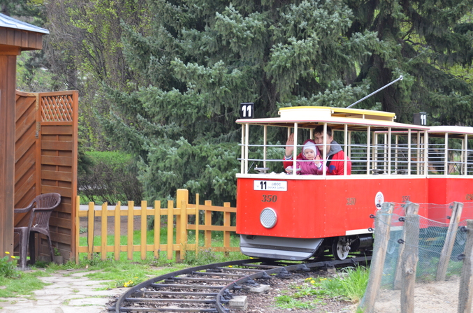 Отличная забава для малышей катание на паровозике по ферме. Паровоз едет вокруг зоны, где скачут кролики(их там мнооого), бегают куры, утки и гуси. Кто будет кататься, совсем рядом есть лесенка, ведущая вниз, она уводит к центру полянки, над поляной стеклянный купол, так вот можно смотреть через этот купол на животных из центра.