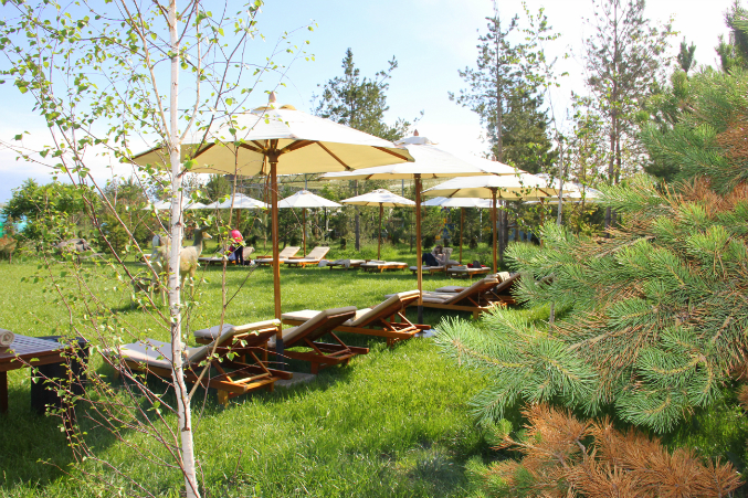 Огромное количество цветов и деревьев, огромная детская площадка с аниматорами в придачу, "На территории Восемь Озер Park Resort расположен самый большой в СНГ и Средней Азии Пляжный клуб, общая площадь которого составляет 20 000 кв.м, что позволяет одновременно принимать более тысячи посетителей. Только водная гладь двух бассейнов для взрослых и одного детского бассейна занимает территорию в 6 500 кв.м. Бассейны оснащены самыми современными системами водоподготовки и очистки воды. А заполняются они природной водой из артезианского источника",