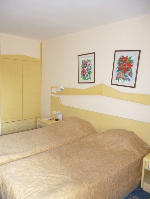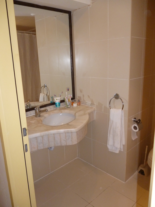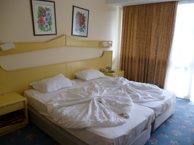 На первом фото, кстати, вид с нашего балкона. Приехали мы довольно поздно, около 8 вечера, было жутко пасмурно, слегка дождило... Вокруг одни сосны-ёлки, моря нет, мы в шоке... Думали ну попали, а на утро из окна вот этот пейзаж. Заселили кстати очень быстро, минут за 10 всех, кто с нами прилетел. Номер приличный, мне кажется соответствует цене, чисто, убирали каждый день, за неделю трижды меняли белье. Фото номера: