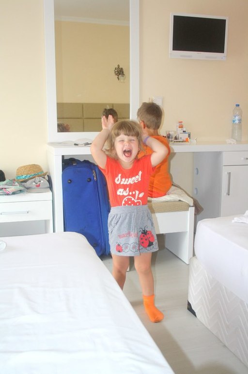 В отель прибыли около 10 утра.Оставили багаж на ресепшине и отправились на завтрак.Затем нас достаточно быстро заселили.Номер дали обалденный!Очень просторный,акцентирую на этом внимание,т.к. отель достаточно новый и буквально в апреле накануне нашего отпуска в нем открылись еще 2 корпуса с какими-то неизвестными эконом-номерами,о которых никто ничего вразумительного сказать не мог.Ну вообщем-то потом это стало понятно-комнатка 10 кв.м-где вчетвером ну нереально...Нашим знакомым такие достались-они передоговаривались на другой номер.