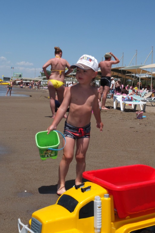 для малышни там есть городок на берегу моря, в этом городке есть лопатки-ведерки-формочки, а также огромные самосвалы и экскаваторы в огромном количестве. ну и качели, конечно))))