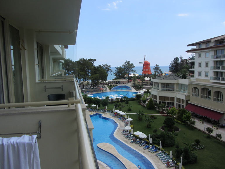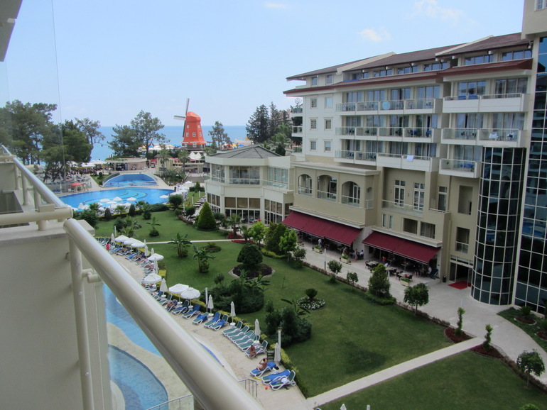 Собственно сам отель, его внутренняя территория. Она небольшая, но компактная. Вид с балкона нашего номера.