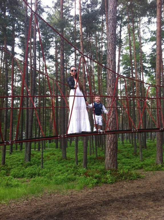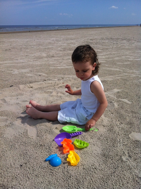 В самой Юрмале очень красиво. Весь город утопает в сосновом лесу, вокруг красивые домики непохожие друг на друга, практически чистый пляж с белым песком. Вдоль всего пляжа стоят детские площадки (качели, горки, паутинки) и немногочисленные кафешки. Море прохладное и ребенок в основном бегал в заливчиках (островки, куда затекает вода и нагревается на солнце).