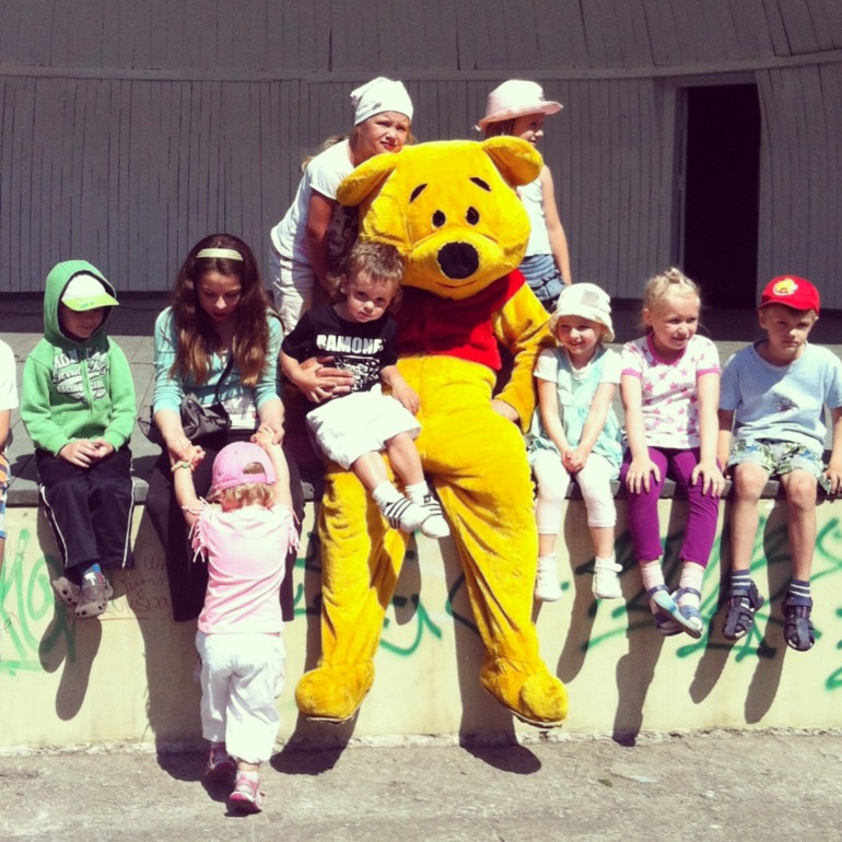 В районе где мы жили (Меллужи) каждое воскресенье детям устраивают представление на старой эстраде. Аниматоры проводят конкурсы, игры, поют песни. Все это совершенно бесплатно. Мы попали на два таких праздника. В один из этих праздников к детям выходил Винни Пух. В другой раз детей переправляли через пруд в парке по канатной дороге.