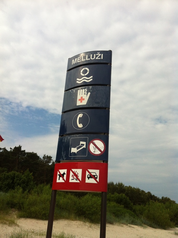 Вся Юрмала - это пляж протяженностью в несколько километров. Для ориентировки стоят информационные стенды, чтобы понять где вы находитесь. Кстати, выгул собак на пляжах запрещен. Штраф 250 лат. Это очень много. Тем не менее все гуляют с собаками.