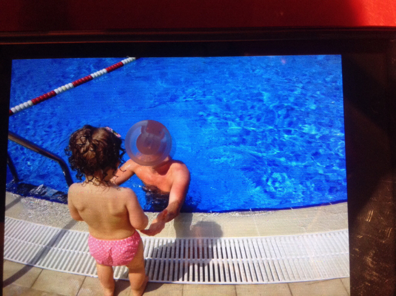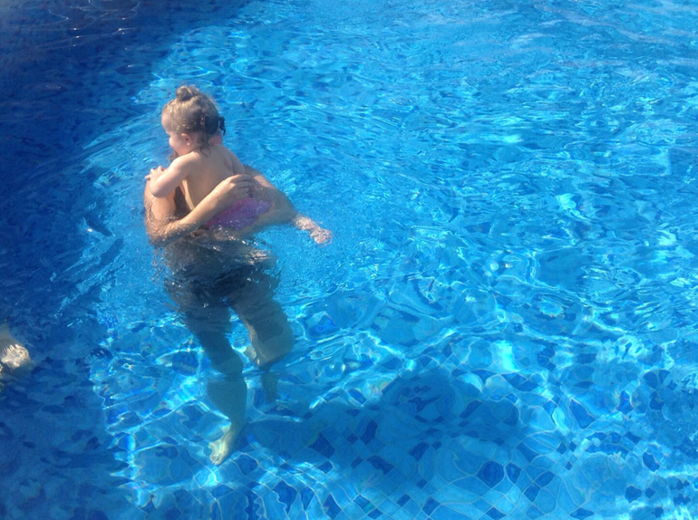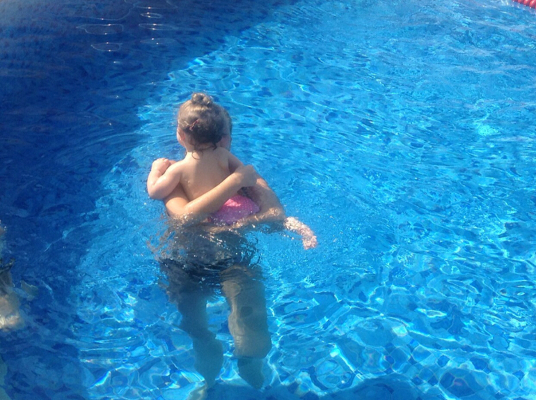 Детский бассейн, мы ходили вообще без " ручки" самостоятельно))но естественно под нашим контролем!!