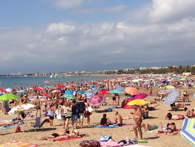 Сам центральный пляж производит ужасающее впечатление. Сначала мне показалось, что я попала на какую-то демонстрацию, потому что количество тел на кв/метр зашкаливает. Публика специфическая.