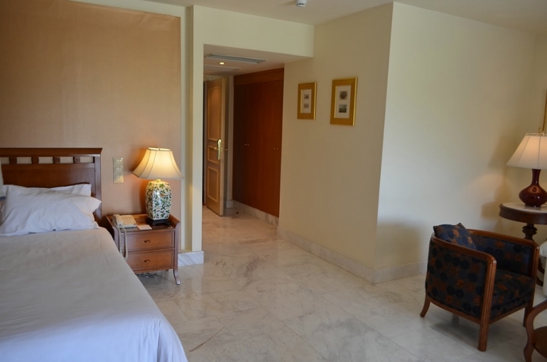 У нас был большой номер, в номере стояла большая двух спальная кровать и рядом уже была приготовлена кроватка для дочки. Приятно, что нас ждали и уже все было готово! В номере не хватало только чайника с кофе и чаем, вечерами перед сном хотелось бы на террасе балкона смотря на ночные огни деревушки Агия Пелагия пить кофе! В номере постоянно пополняются молочко для тела и шампунь 3 в 1 . Мыло кладут через день! В номере есть сейф который открывается только через вашу карточку, которая дается при въезде для открывания входной двери. В номере в шкафу весят два халата, тапочки одноразовые. Вешалок в шкафу достаточно. Утюга и гладильной доски в номере нет, это уже платно. В номере стояла небольшая сушилка для белья. Есть небольшой телевизор с несколько русскими каналами. В мини баре все платно и дорого, дешевле будет купить баночку кока колы за территорией отеля за 1,5 евро, чем взять с бара за 5 евро. Кто то в отзыве пишет что шумно работает кондиционер, он конечно не прям тихий, но спать вообще не мешает. За 10 дней меняли один раз постельное белье, убирались и меняли полотенца каждый день, белье и полотенца чистенькие и глаженные все белоснежного цвета! Вид с балкона был шикарный, очаровательный сад, за садом виднелось море где постоянно плавали кораблики, и за морем виднелась скала с деревушкой по которой ездили автобусы и автомобили и все это видно с номера!