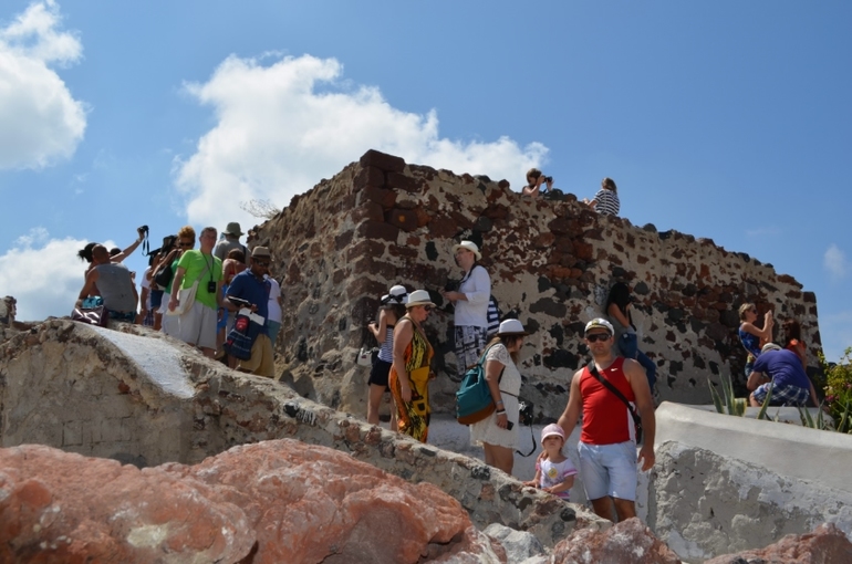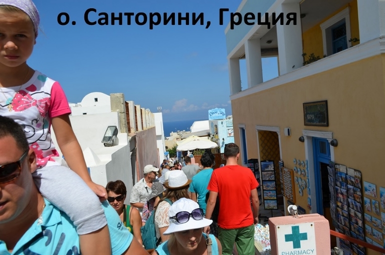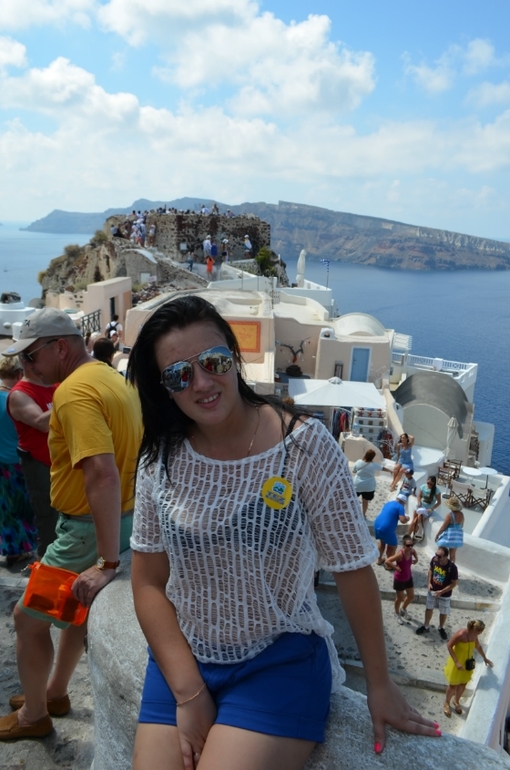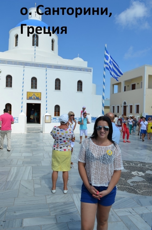 Так вот про Санторине. С утра нас привезли в порт Ираклиона там посадили на скоростную лодку и 2,5 часа мы плыли до острова! Скажу так, что эта экскурсия не стоит своих денег, больше пол дня вы в каких то разъездах! Приплыли на Санторине, потом ехали 40 минут до города Ия. Город конечно красивый, белоснежный, но народу там море и стоит спустится в какую ни будь маленькую улочку стоит запах как в туалете((( Людей так много что там одно желание быстрее пробежать по этим улочкам в укромное и безлюдное местно! У нас был гид, не хотелось бы называть её имени, она девушка быстрая, ушла от нас так быстро и куда то завернула так не заметно, что мы не заметили так как много других людей, в итоге мы и большая часть нашей группы потерялись, а мы были с ребёнком и с нашей группы были вообще с ребенок в коляске и мы с детьми физически не можем бежать! Некоторые туристы с нашей группы пристроились к другому гиду Тез Тура и пошли с другой группой. Мы стояли ждали и не дождались пошли вперед, потом мы встретили нашего гида и за ней из 40 человек шло всего 4 человека! После того как мы попросили не теряться, она всегда искала нас и говорила куда идти! Если честно гидом из истории Санторине и Греции было сказано мало, даже нечего вспомнить, одни примеры «как делали туристы, сколько зерен туристы взяли с храма и так далее…» В итоге в самом городе Ия мы были 2а часа и вернуться к автобусу надо было в указанное время гидом. В итоге мы толком не успели посмотреть на город. Дальше нас повезли минут 40 до пляжа. Вот именно пляж мне настроение и подняло, так как ходьба по городу, где куча народу и сильная жара как то угнетала, да ещё не зная куда идти и что смотреть! А море после жары прям спасло всю экскурсию! Красивый вид, вулканический черный песок по которому нельзя идти босыми ногами он очень горячий! На пляже мы покушали, искупались и там мы были всего 1,5 часа и потом поехали в столицу Санторине г. Фира. Там кто хотел шёл с гидом пробовать вино и ликёры и что то купить, а кто хотел фотографировался на фоне вулкана и гулял по улочкам столицы. Вот и вся экскурсия, нас ещё и забыли высадить в нужном месте с автобуса на Крите что бы мы на ждущей нас машине доехали до отеля. Про нас просто забыли и увезли дальше)) В итоге мы потеряли 15 минут, и именно 15 минут нам не хватило успеть на ужин! Считаю что лучше за эти деньги взять машину в прокат на два дня и поездить по красивому острову Крит, на Крите больше реально красивых мест!! Так что не советую ехать на Санторине!