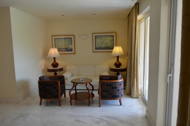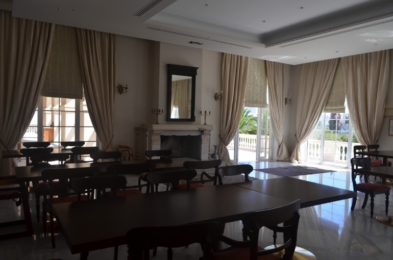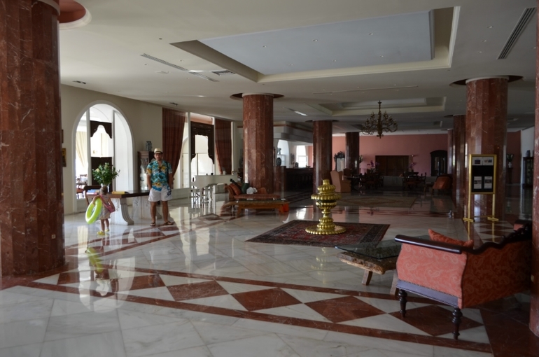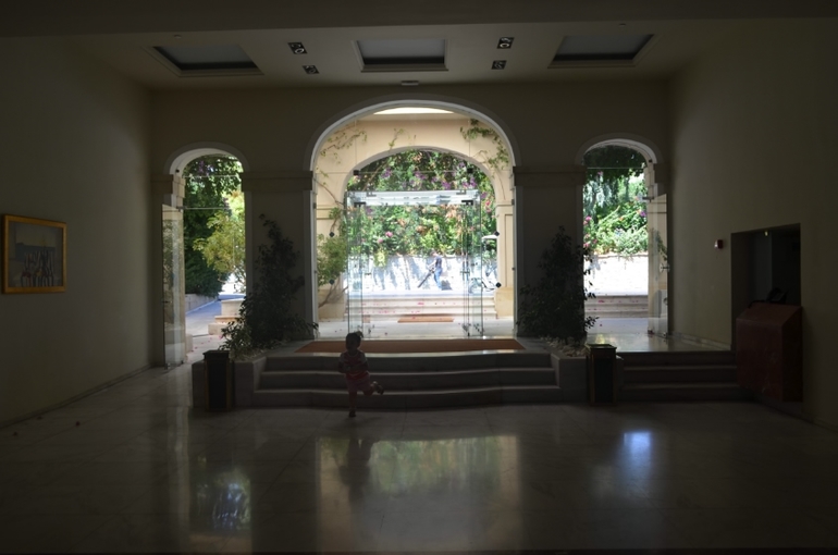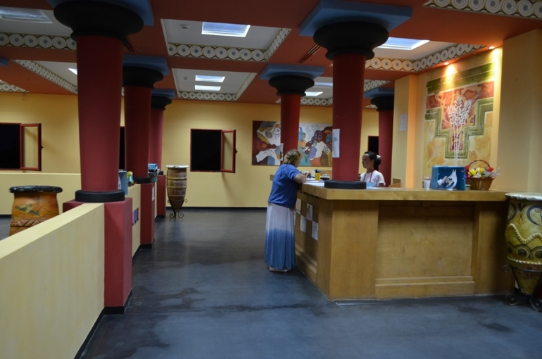 При приезде в отель пока нас оформляли на ресепшене, нас угостили вкусным освежающим соком и через 5 минут нас уже заселили. На ресепшене есть как русскоговорящий работник ресепена так и иностранный, что очень удобно для туристов! Очень благодарны работнику на ресепшене молодому парнишке Мангосу, быстро он нам помогал решить все наши вопросы на любую тему! Молодец отлично работает! Отель напоминает музей, стоят везде шкафчики с интересными вазочками и скульптурами, номер и ресепшен из красного мрамора, попадаешь как в исторический музей! По поводу интернета, в отеле бесплатного нет, только платный 1 день стоит 10 евро. Но в любой таверне за отелем заказав только чашечку кофе вам дают пароль от интернета и он не меняется можете потом стоять у кафе и чатиться)) Кстати могу дать пароль от кафе Café bar NEFELI который находится прям за воротами отеля рядом с магазином Шуб. Пароль NEFELI2014