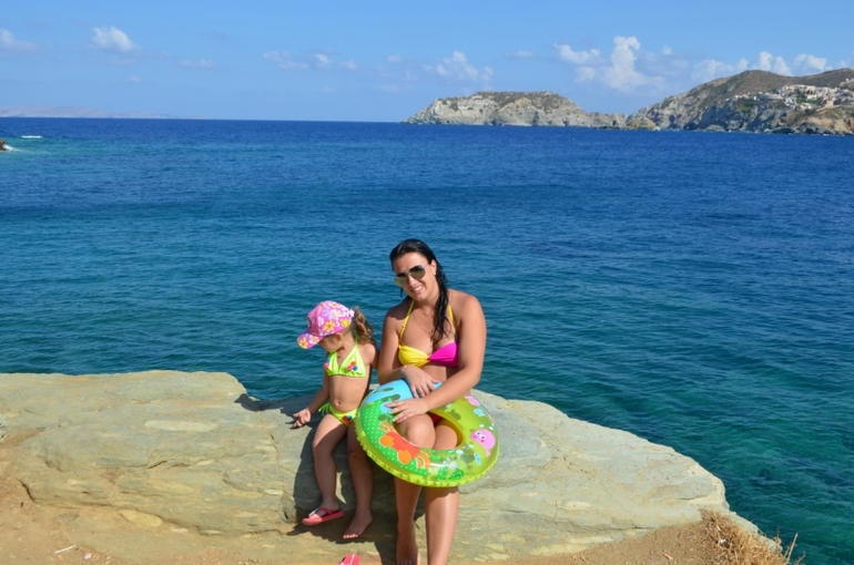 На второй день рано с утра мы поехали в лагуну Балос, которая находится на западе острова Крит. До Балоса 2а часа езды, но побывать там стоит! При въезде на территорию балоса где вы едите вдоль обрыва подымаясь на самую вершину скалы с вас возьмут 1 евро с человека в машине и вы поедите дальше. Проезжая вдоль обрыва вы наслаждаетесь красивым видом моря с вершины скалы, это конечно не забываемо, открывается шикарный вид и одновременно страшновато)) Когда вы доедите до парковки оставляете машину и 2а км идете пешком до лагуны спускаясь со скалы. Спустится то не проблема, а вот подыматься 2 км в крутую горку, где камни и полу сделанные ступеньки из камней очень тяжело, но БАЛОС стоит того, я бы там ещё побывала!! Потому что такой красоты ещё ни где не видели. Лагуна состоящая из природного мелкого бассейна, соединяющийся с морем. Спустившись до пляжа вы можете занять лежак который стоит 2 евро, а если два лежака с зонтом то 7 евро или можете просто загорать на песочке. Водичка прозрачная голубая, соленая и на удивление она не очень теплая) не смотря на то, что по колена воды. Для детей там идеально, а для родителей это конечно само море, в котором и на волнах можно попрыгать и просто спокойно искупаться! На территории Балоса нет ни каких жилых зданий, там только природа и стоит одна небольшая кафешка, где можно не дорого перекусить! Есть переодевалка и душ! Прям бушующее красками эта лагуна! На Балос обязательно брать крема солнцезащитные и головные уборы, солнце там палящее, а спрятаться не куда)