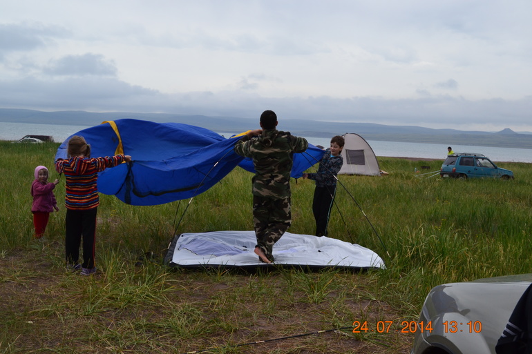 Озеро Белё ставим вторую палатку