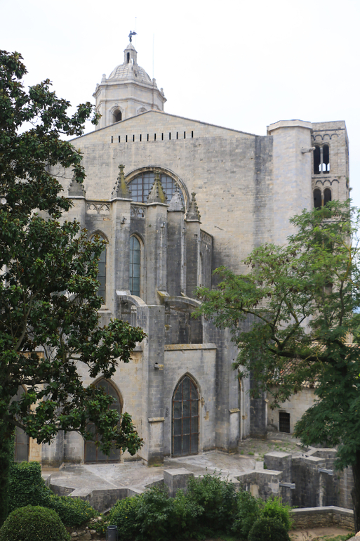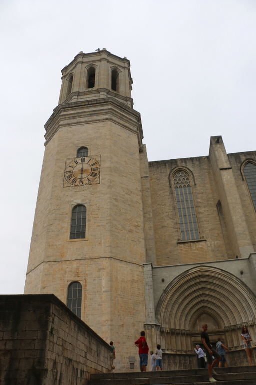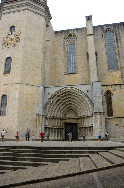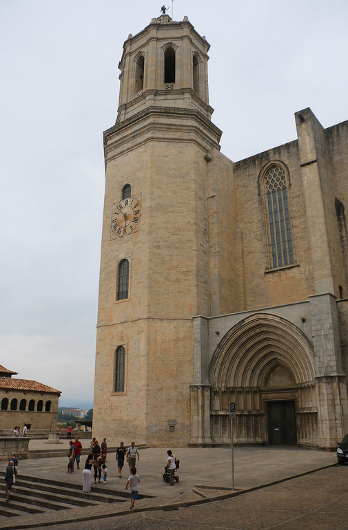 Собор начали строить еще в 1312 году. Жирону часто называют «Бессмертным городом», так как крепости пришлось выдержать 25 крупных осад и приступов. Одна лестница состоит из 90 ступеней, являясь самой длинной в Испании в 17 веке. Существует поверье, что поднимаясь по лестнице, человек отмаливает свои грехи. Один подъем - один грех. Также она была построена, чтобы вместить большее количество людей. Бронзовый ангел украшает флюгер колокольни. Здесь есть трон за алтарем, трон Карла Великого. Внутри собора есть захоронения известных граждан Жироны.