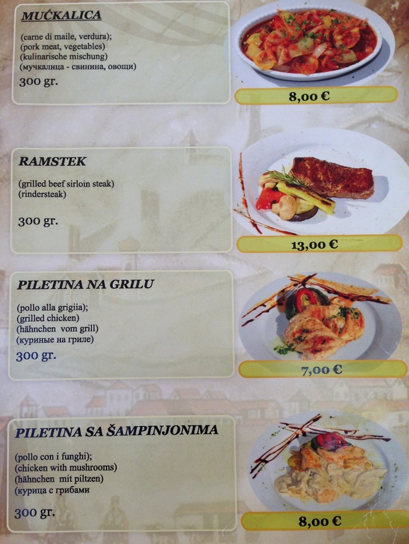 Знаю насколько любопытно бывает узнать цены в кафешках города, куда намереваетесь поехать, удовлетворю интерес и покажу вам меню ресторана. Делайте скидку ( а в данном случае наценку) на то, что это самое попсовое кафе в самом центре скопления туристов.