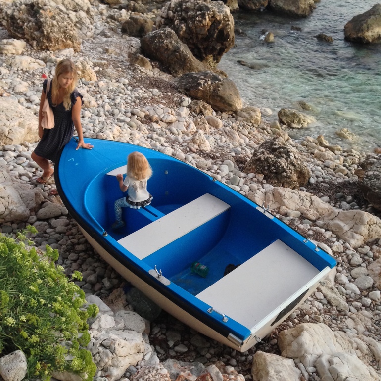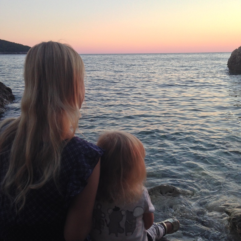 Пляжи - в основном галька. В Круче галька крупная, без специальной обуви ходить совсем не комфортно. Были на Великом пляже в Ульцине, он огромный, песчаный, вход в море слишком плавный и долгий, на этом пляже было ветрено. Ника с Сашей гуляли по пляжу, я отдыхала и загорала, мы снимали видео и много фотографировались.