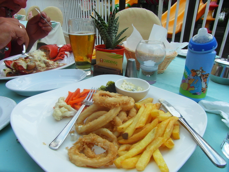Ребенка вечером можно тоже спокойна покормить и не бояться острого и соленного, есть детский стол, но суп там уж совсем не вкусный, мы ели обычный суп пюре и рыбку или мяско+овощи.
