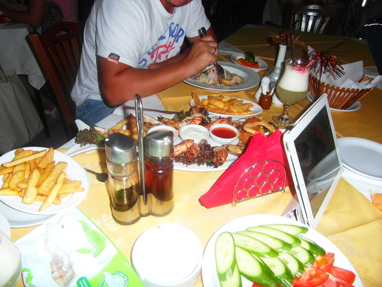 Еда замечательная, на завтрак есть каша, очень хорошая и качественная... много йогуртов, маленького ребенка всегда можно накормить! Что для нас было важно! Для взрослых огромный выбор, уж голодным точно вы не будете! Ужин вообще выше всяких похвал!!! море продукты каждый ужин, мясо, курица, салаты, рыба, картошка, паста, рис, бекон балык с пивкомммм ммммм итд и все очень очень вкусное!