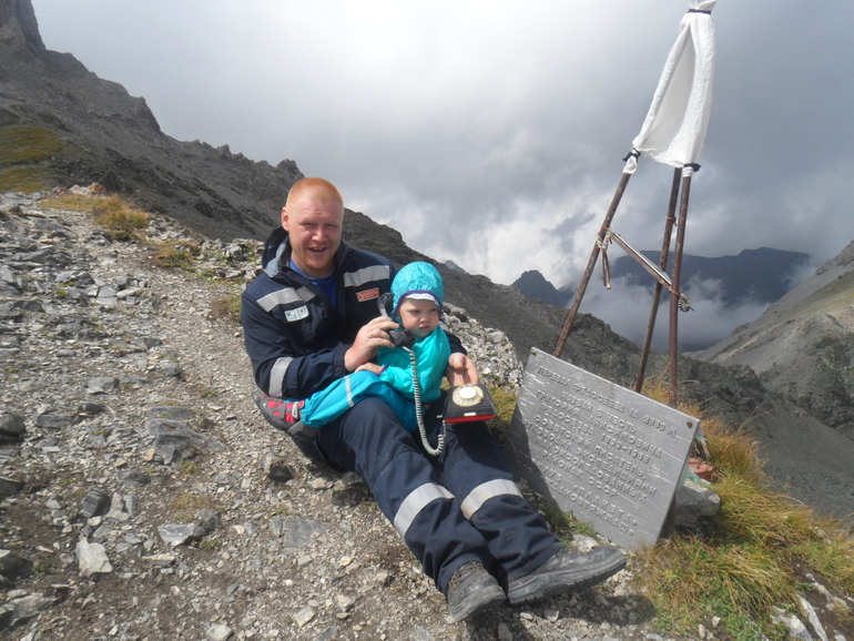 На следующий день на перевал пошли я, муж и Саша на мне. На папе он ехать наотрез отказался. Пристроили Сашку за спину и вперед.