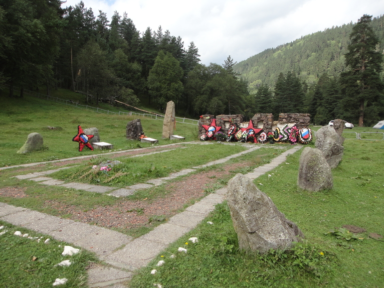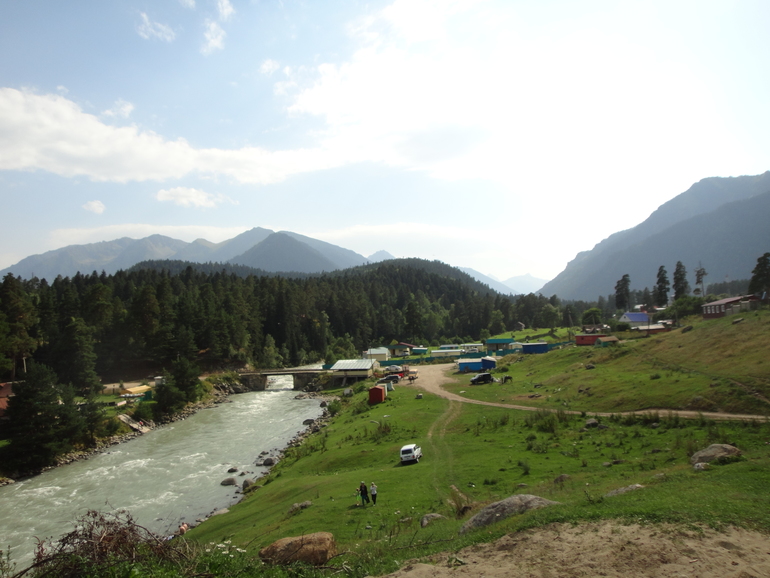 В этом месте стоит большой палаточный лагерь. Здесь многие туристы заканчивают свои маршруты и становятся на отдых. На поляне работает большой рынок. Можно нанять машину для поездок по району. Также здесь расположен мемориал ВОВ.