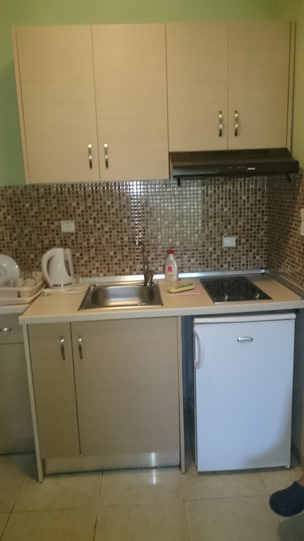 Номера относительно большие, размер увеличен за счет того, то столы вынесены на балконы. На самом деле отличное решение для данного климата и строения номера, потому что номера там прямоугольные, поставить 1 двуспальную кровать 1 односпальную, 2 тумбочки, комод, шкаф, кухню и стол в 25-30 м2 (по моим прикидкам) вместе со столом создало бы невероятную тесноту. А так и в номере просторно, и кушаешь с замечательным видом на море, даже с первого полуподвального этажа, а наверху в самом большом номере. наверное вообще красота. Кровати в номере были очень неплохие с удачными матрацами и подушками и красивым бельем (старшая хозяйка занимается пошивом белья, даже на заказ). Кухня в номере маленькая, но нам хватало на приготовление почти всего, чего надо.