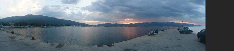 Это понарама с пирса Ставроса. Про город могу сказать, что это очень небольшой, но очень приятный городок, разбросанный вдоль пляжа в окружении красивых гор. В центре, ну точнее на центральной улице большое количество кафе и таверн, некоторые из которых снабжены дополнительно развлечениями для детей такими как детские площадки с домиками и качелями, развлекательными автоматами, и стоит отдельно выделить одно кафе с мягким домиком, в котором мы поводили большую часть времени.
