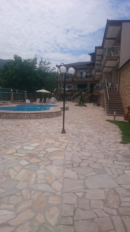 Территория как видно на фото у Maria Lux не большая, но очень чистая и ухоженная. На ней вечером в хорошую погоду можно сдвинуть столы и поужинать компанией (так часто поступали наши сербские соседи), а в плохую есть закрытая часть, где чаще всего можно встретить хозяев. Бассейн для взрослых маленький с достаточно резким переходом на глубину. Детский бассейн достаточно большой, находиться по отношению к солнцу так, что вода в нем нагревается как раз к 12-13 часам, когда многие уходят с пляжа. Ну так как нам был важен именно детский бассейн, мы остались очень довольны.