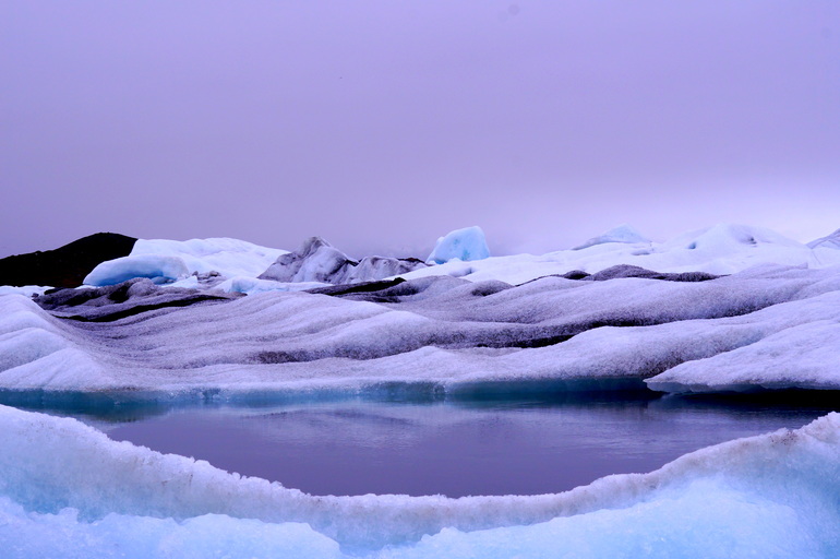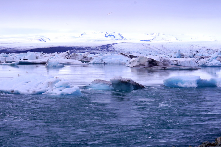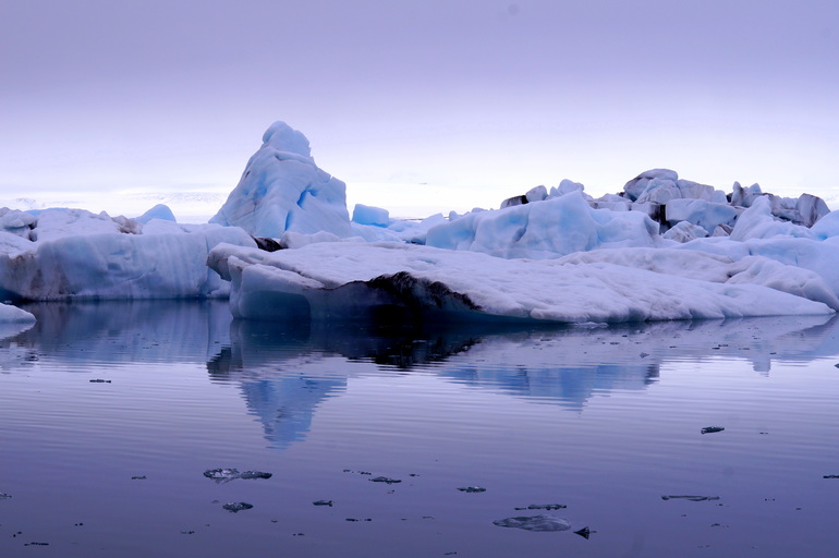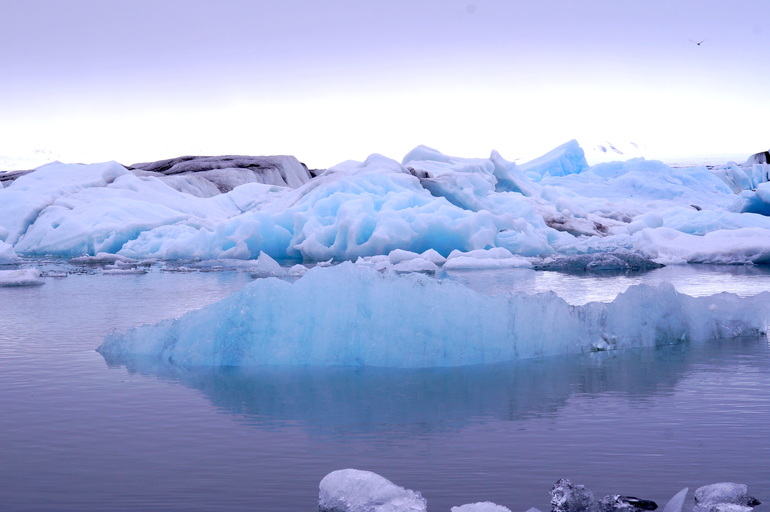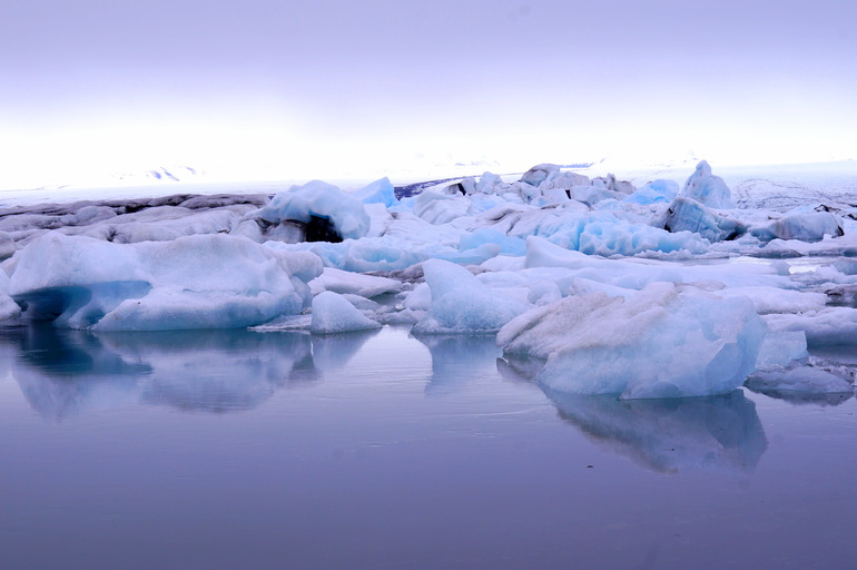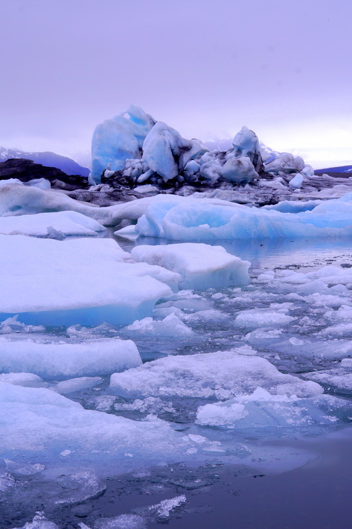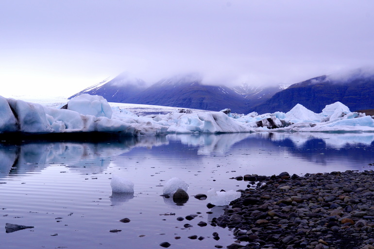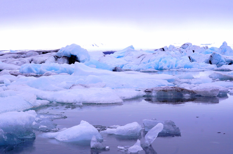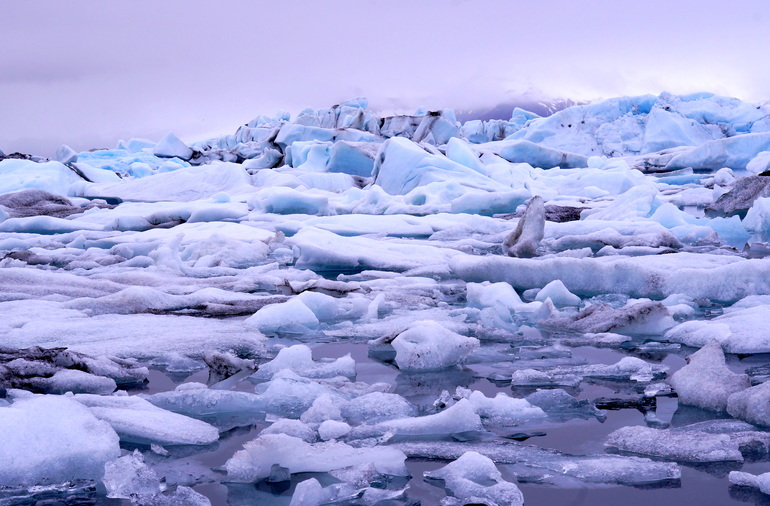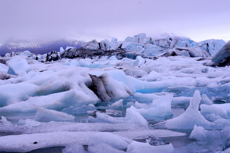 Белые, сине-голубые, фиолетовые, серо-черные цвета в своеобразной палитре, огромные глыбы снега и причудливые айсберги, холодная гладь воды и ледники вдали представляют собой это загадочное место - Ледниковую Лагуну.