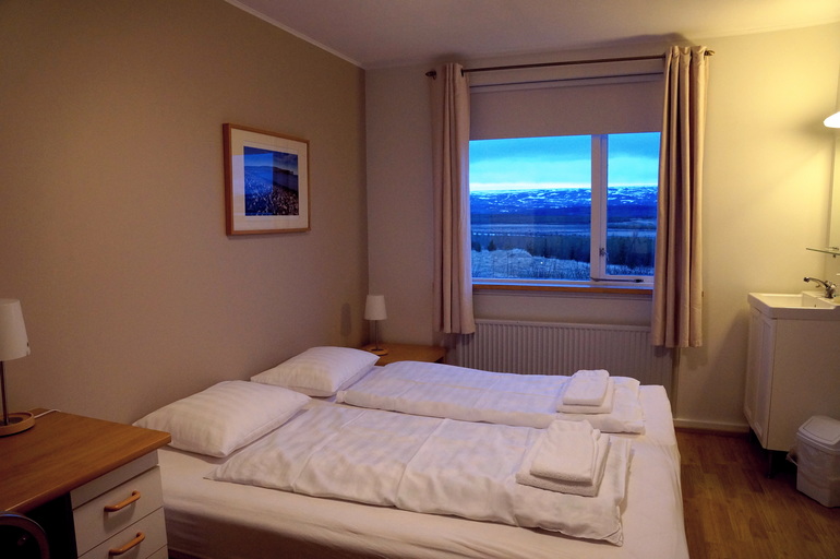 Номер нам достался уютный и с замечательным видом на горы. Но! (раз дядька на ресепшене не разделил нашу радость, в отместку напишу плохой отзыв) С неудобными розетками где-то за встроенными тумбочками (это существенный косяк, ведь мы каждодневно заряжаем аккумулятор фотоаппарата, 2 телефона, айпад и ноут) и с общим туалетом и душевой. В принципе, что забронировали, то и получили. Просто мы первый раз ночевали в номере такой категории - чтобы ванная комната была где-то там в коридоре. Это неудобно и ни фига не романтично.