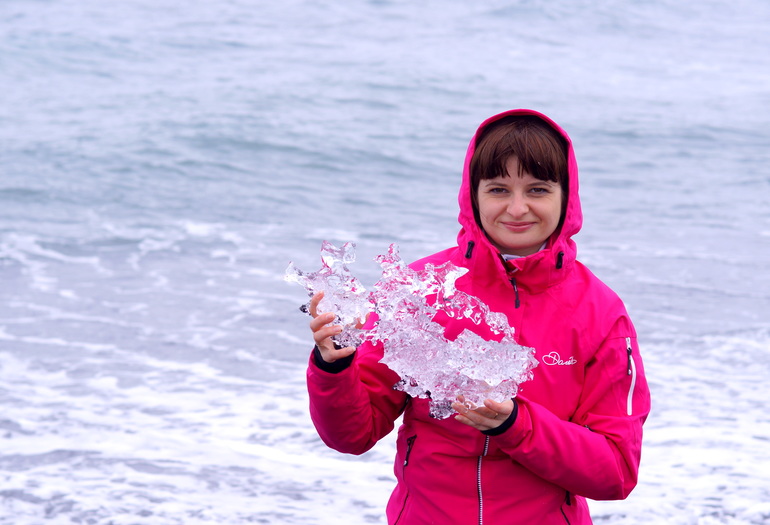 Лед кристально чистый, прозрачный. Сначала он кажется лишь слегка прохладным, но потом нестерпимый холод обжигает итак уже озябшие руки. А капельки пронзительно холодной воды игриво забираются под рукава.