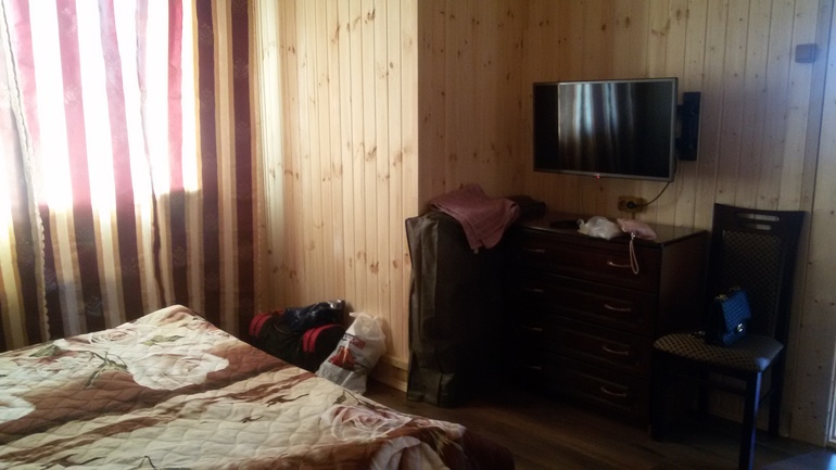 Нас было двое, еще по телефону собственник сказал, что домик этот новый и ранее никому не сдавался, что вот у них последние штрихи, проводят электричество и можно бронировать. Мы были первые. И это круто.