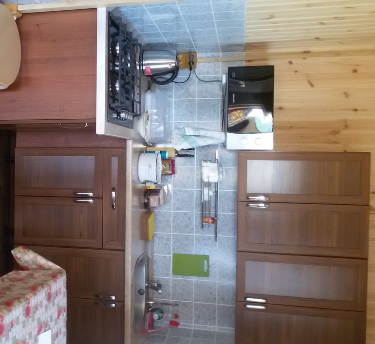 В домике было все!!! Даже зубочистки))) Все-все! Вся посуда, постельные принадлежности, полотенца, утюг, сушильная доска, водонагреватель, холодильник, шезлонги, качельки дачные, даже пледики! На случай холодной погоды электрические батареи. Ну и печь). Все новое, чистое, приятное.