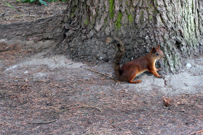 Встретила нас белочка, жалко нечем было угостить, они как и в Пушкине очень дружелюбные там