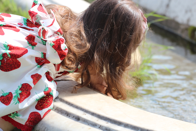 девочка-клубничка немного позвездила перед главным фонтаном)))
