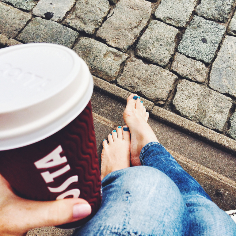 Небольшой перерыв на кофе и "побегать" Ромке. Наша походная коляска эту брусчатку не осилила, поэтому ходить приходилось пешком. Или носить Ромку на руках.